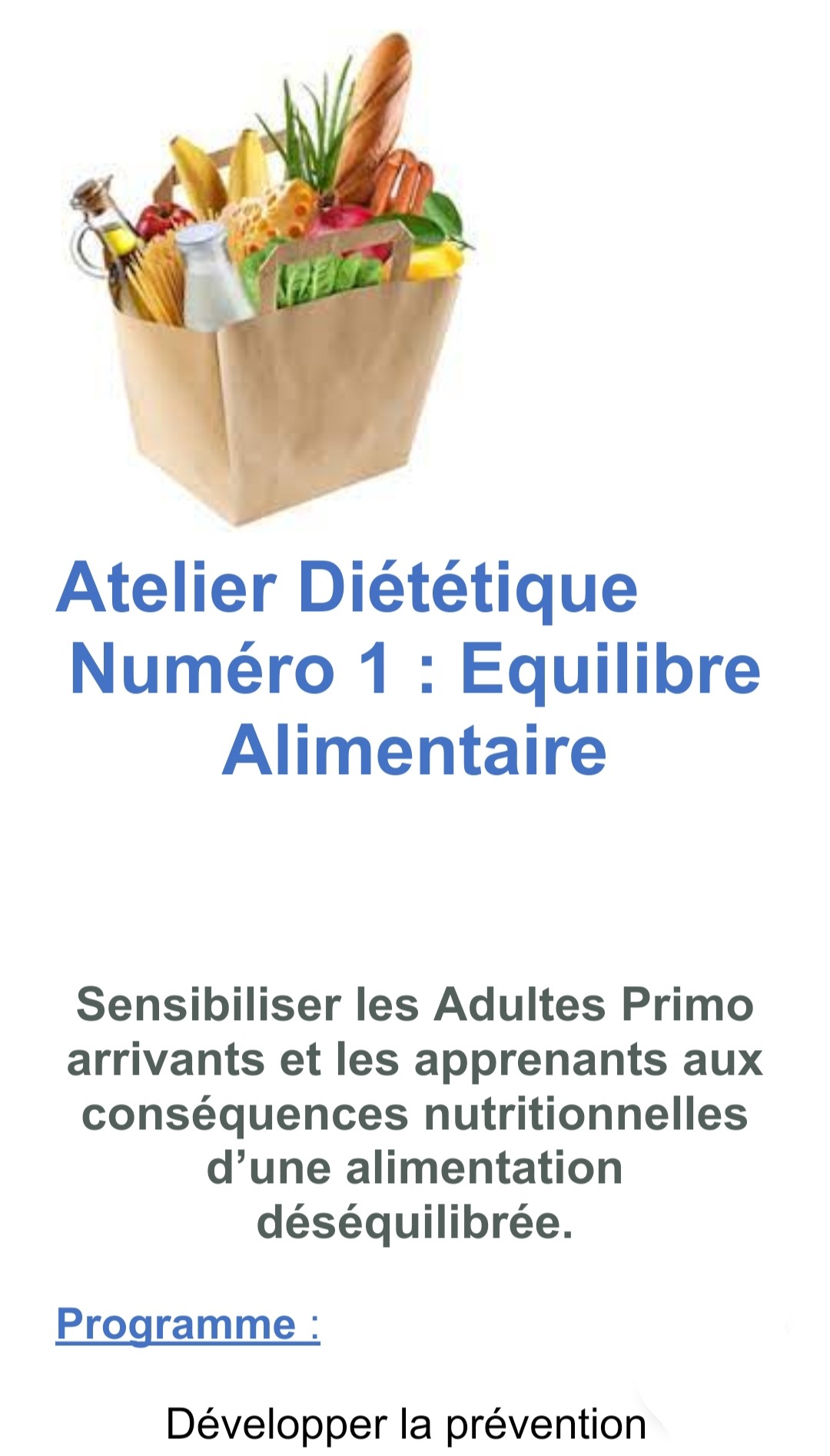 L’objectif étant également que nos apprenants (mère ou père de famille) transmettent ce « manger mieux et bouger plus » à leurs enfants.