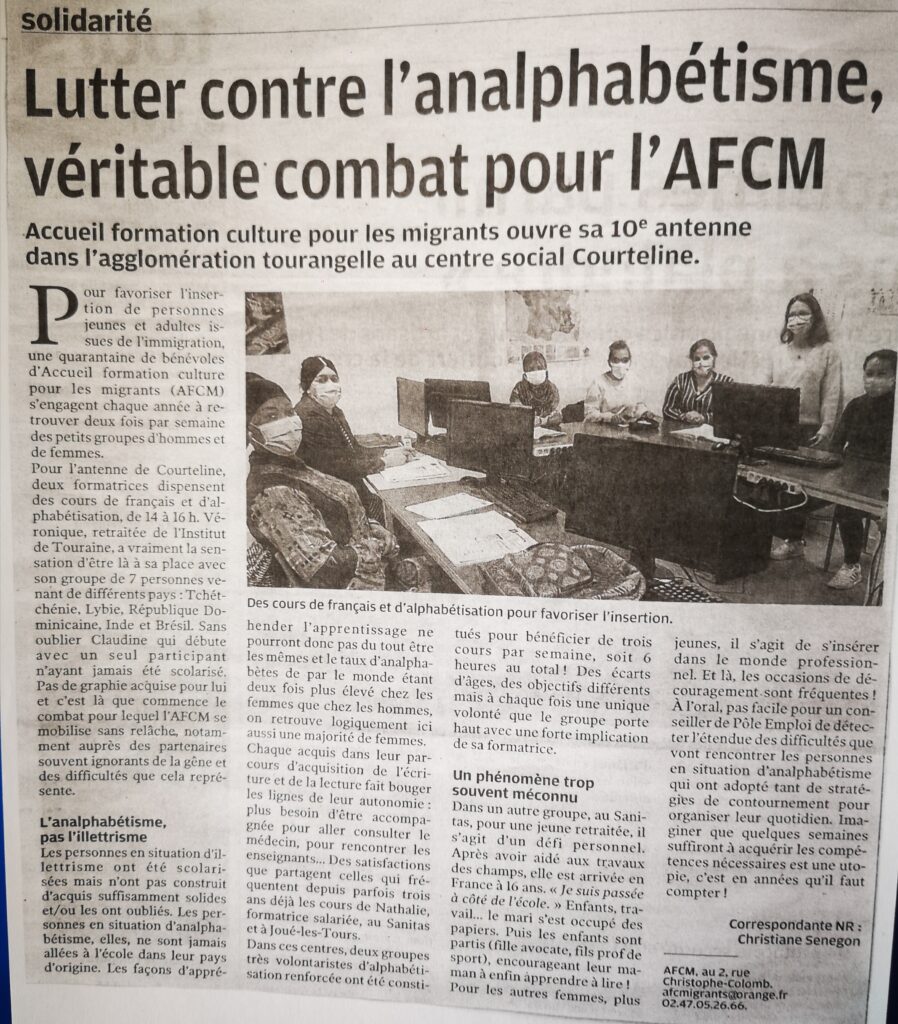 Dans le cas de l’AFCM nous alphabétisons des personnes francophones et non-francophones. Nos cours d’alphabétisation se déroulent dans différentes antennes de l’AFCM.