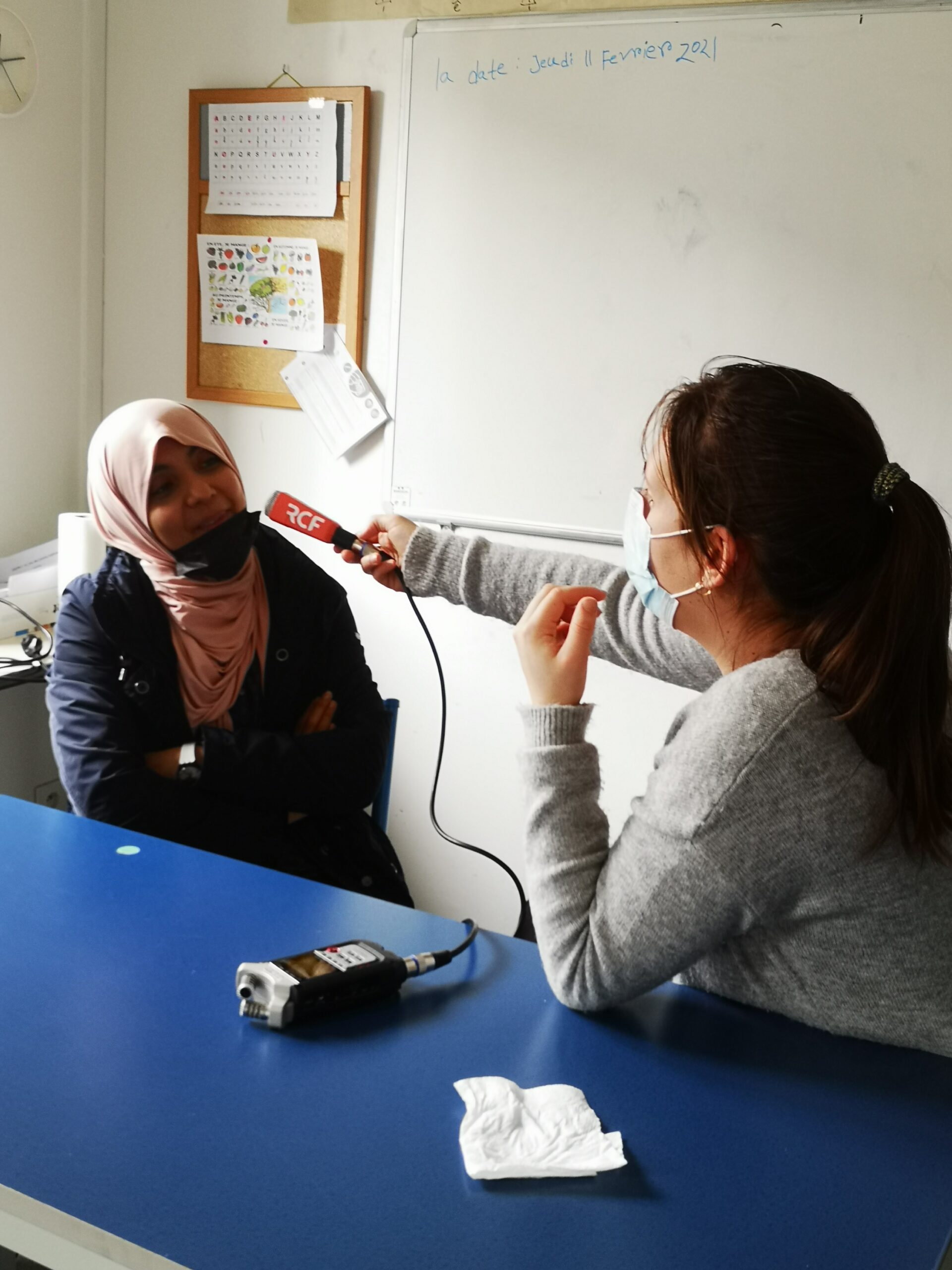 Mathilde Errard, journaliste de la radio RCF est venue les 8 et 11 février 2021 voir et découvrir deux cours bien distincts de l’AFCM : un sur l’alphabétisation et un autre de FLE (Français Langue Etrangère) intitulé « Consolidation du français et numérique« , ces deux cours ayant lieu au siège de l’association dans le quartier du Sanitas.